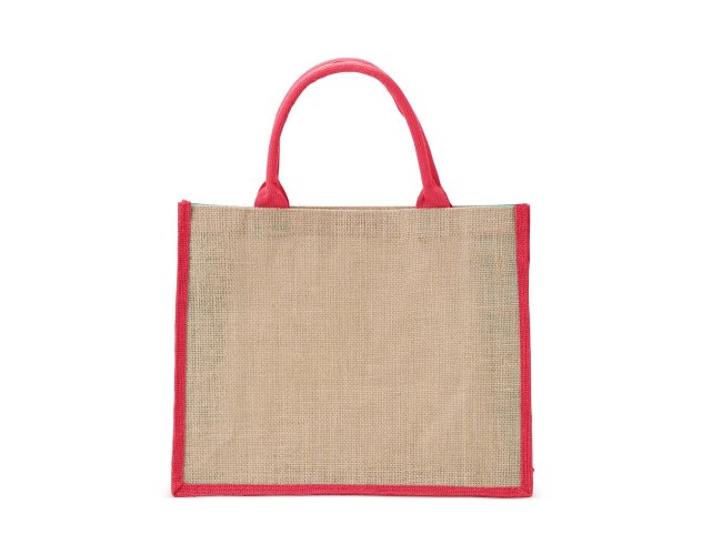 Sacola ecológica confeccionada em juta com alças costuradas na parte interna.